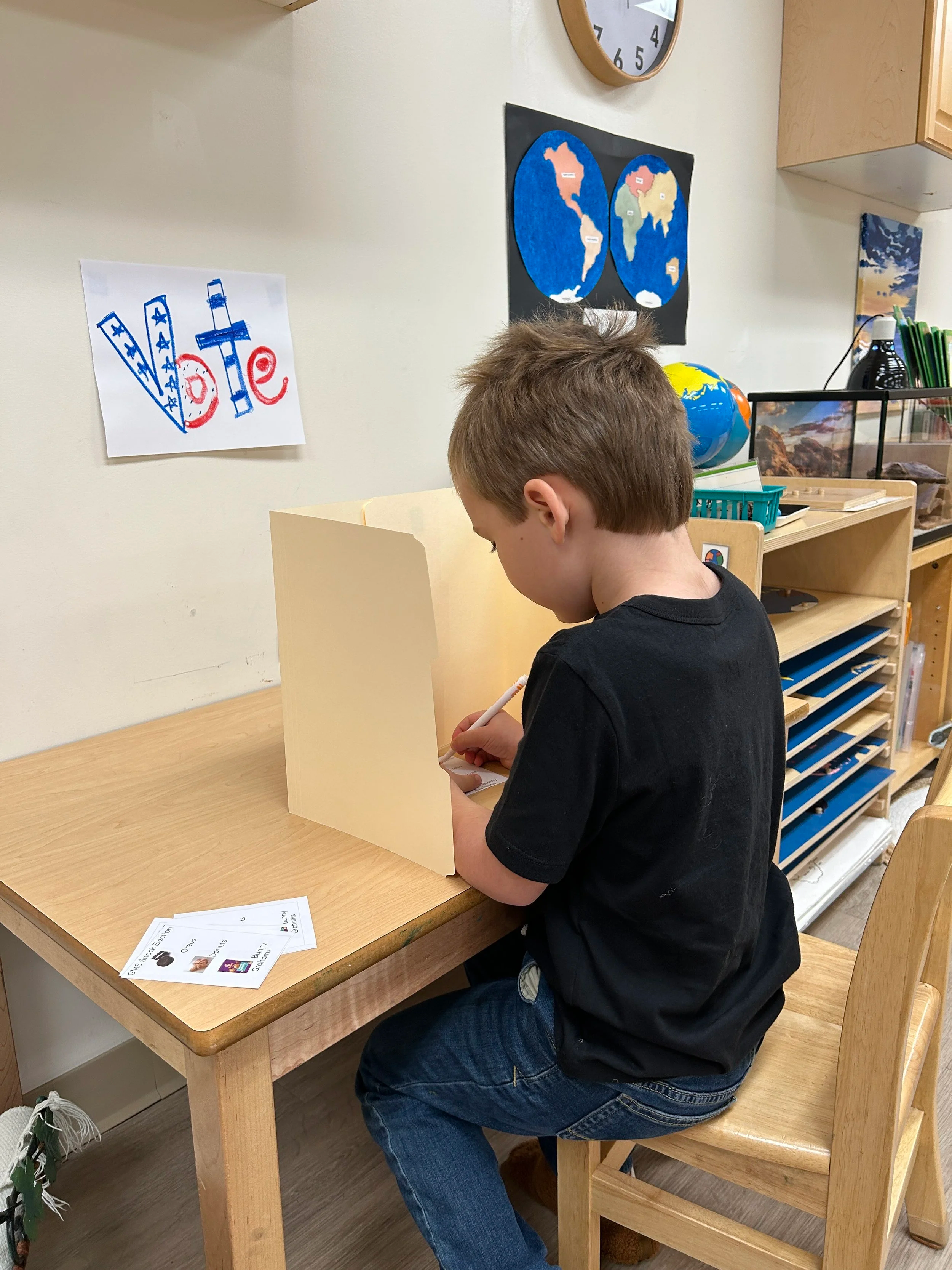 From three year olds to Kindergarten, children move from an unconscious absorbent mind to a conscious absorbent mind. The Primary program at CMS responds to the rapid physical, intellectual, and social development that hallmark this period in a child’s life.